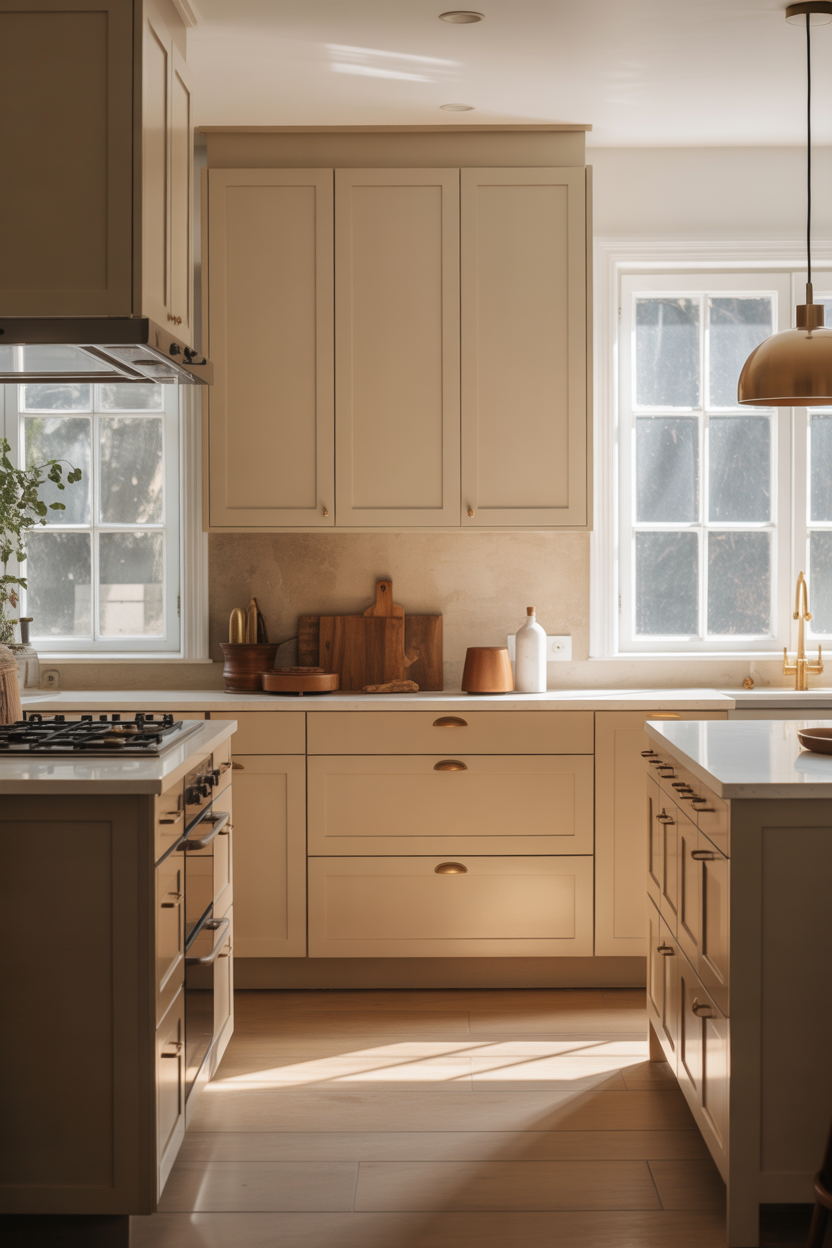 Whether you have a galley kitchen, L-shaped layout, or open-concept space, beige cabinets adapt beautifully to any configuration. In smaller kitchens, beige cabinets maximize the sense of space without the starkness of white. For large, open kitchens, beige provides warmth that prevents the space from feeling cold or institutional.