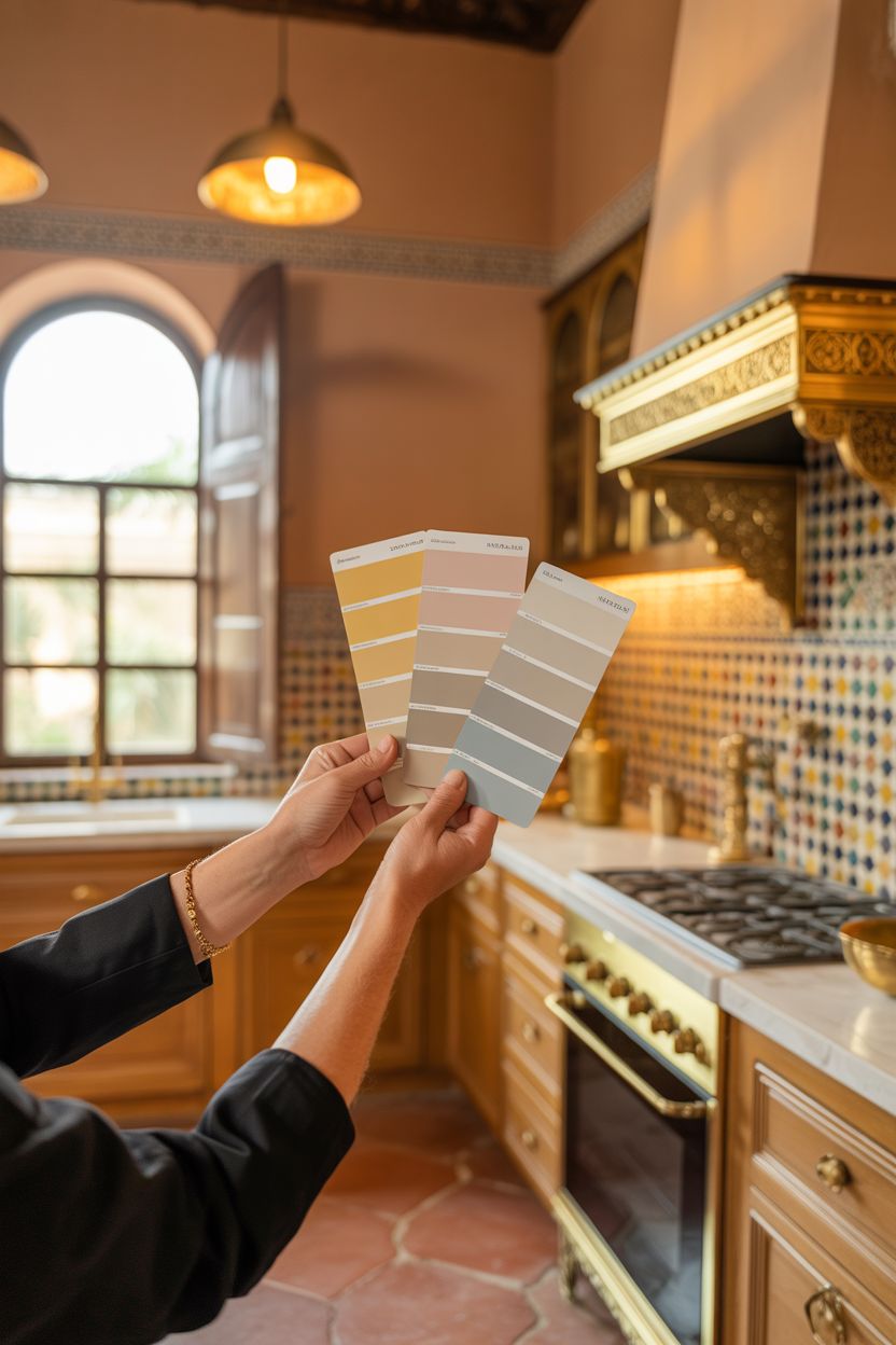 Understanding undertones is crucial when choosing your perfect beige shade. Some beiges lean yellow (warm), others pink (soft), and some gray (cool). For Moroccan kitchens, warm beiges with yellow or golden undertones work best as they complement the earthy Moroccan palette.