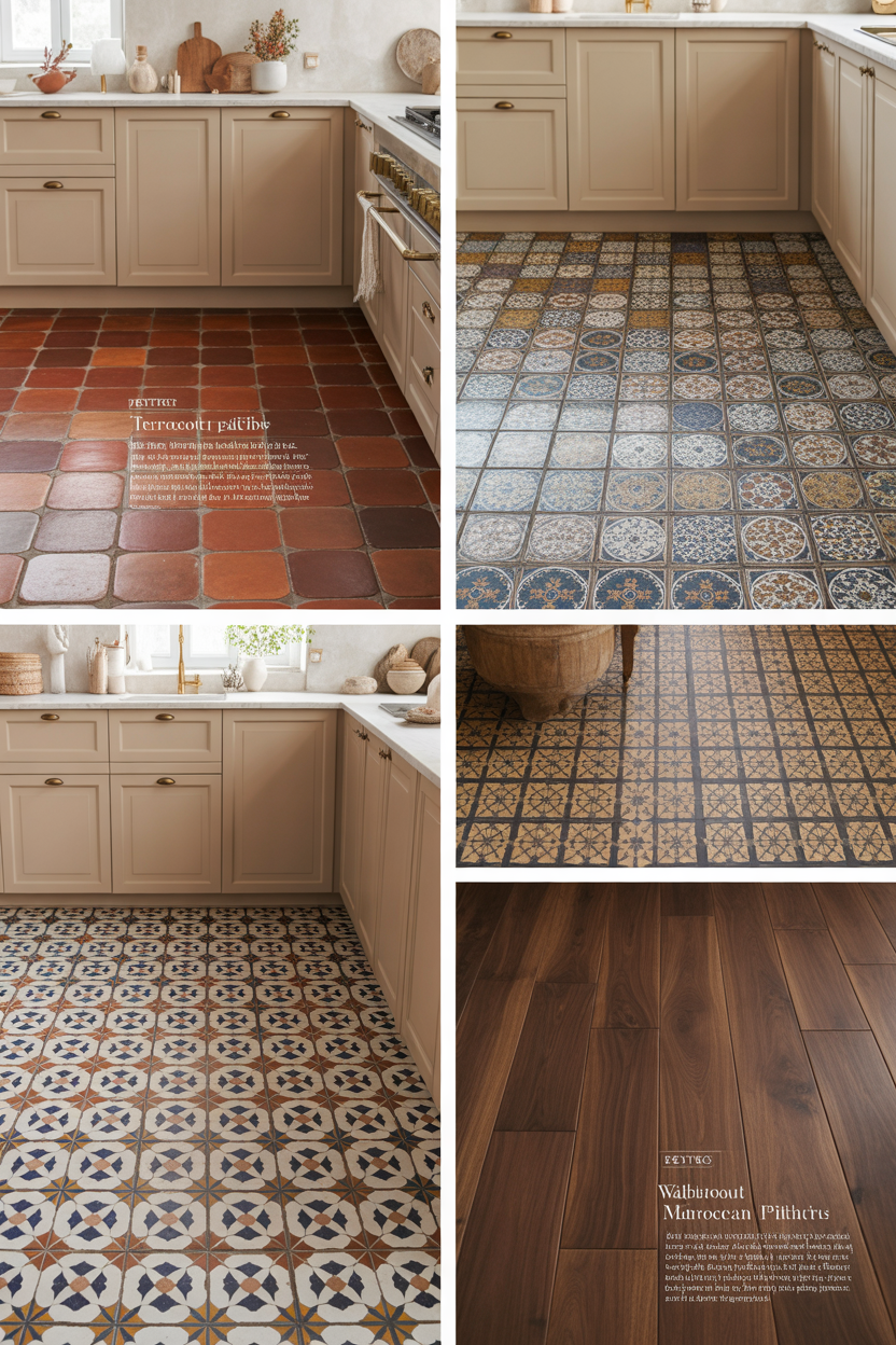 Ground your beige cabinetry with flooring that anchors the Moroccan aesthetic. Terracotta tiles, cement tiles with geometric patterns, or traditional Moroccan encaustic tiles create authentic visual impact while contrasting beautifully with beige cabinets.