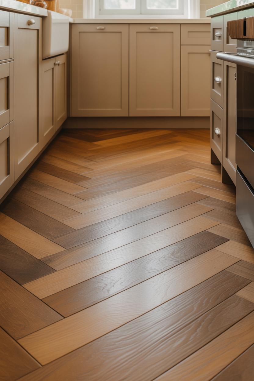 Flooring choices should harmonize with beige kitchen cabinets while adding visual interest. Wide-plank hardwood in medium to dark tones creates beautiful contrast and warmth. Light oak or maple flooring maintains an airy, cohesive appearance. Patterned tile in geometric or Moroccan designs adds personality without clashing. Luxury vinyl planks offer budget-friendly durability in wood-look finishes. Consider the traffic your kitchen receives when selecting flooring materials for longevity.