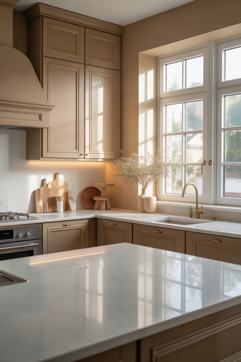 Choosing the perfect Beige Kitchen Cabinet Color can transform your cooking space into a warm, inviting haven. The combination of beige cabinets with white countertops creates a timeless aesthetic that balances sophistication with comfort. This classic pairing offers versatility, allowing you to experiment with various design elements while maintaining an elegant foundation. Beige brings warmth without overwhelming the senses, while white countertops add brightness and visual clarity. Together, they create a harmonious kitchen environment that feels both modern and enduringly stylish.
