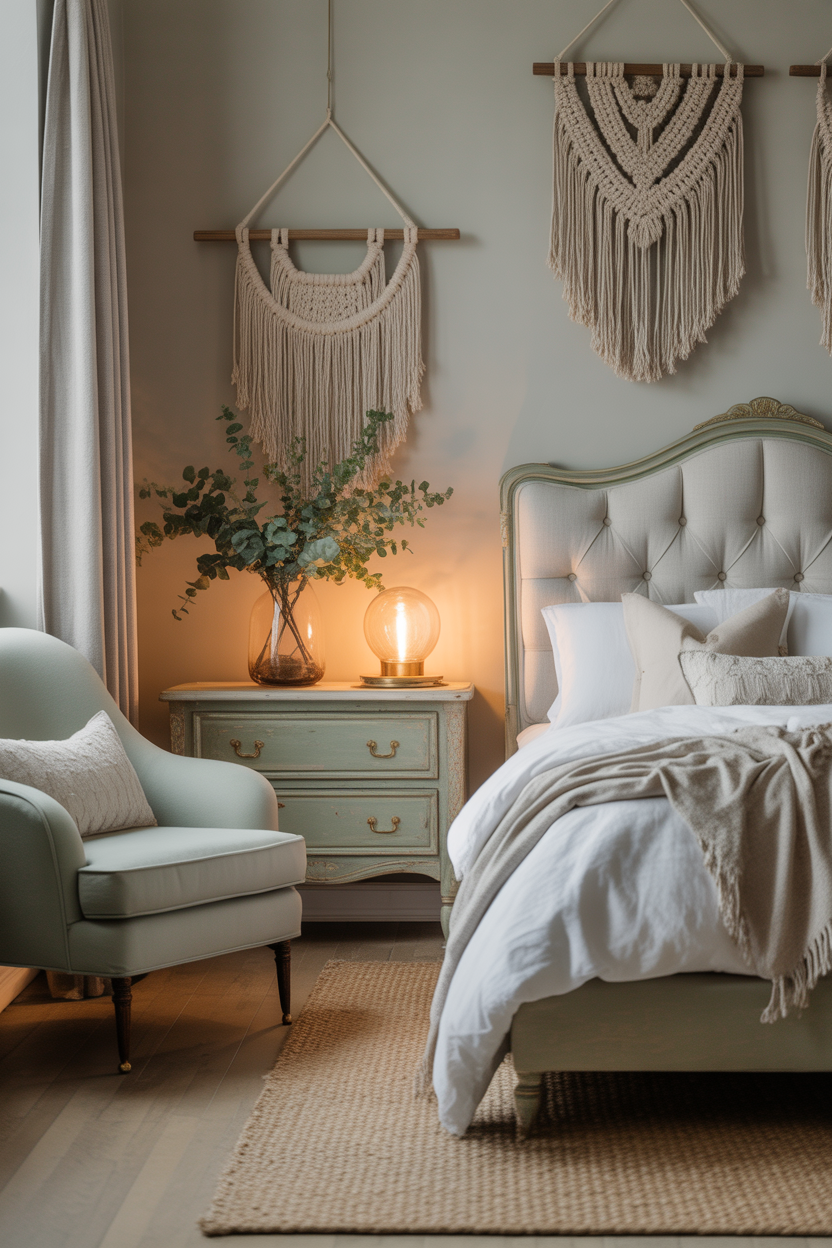 Vintage-Inspired Sage Green Bedroom