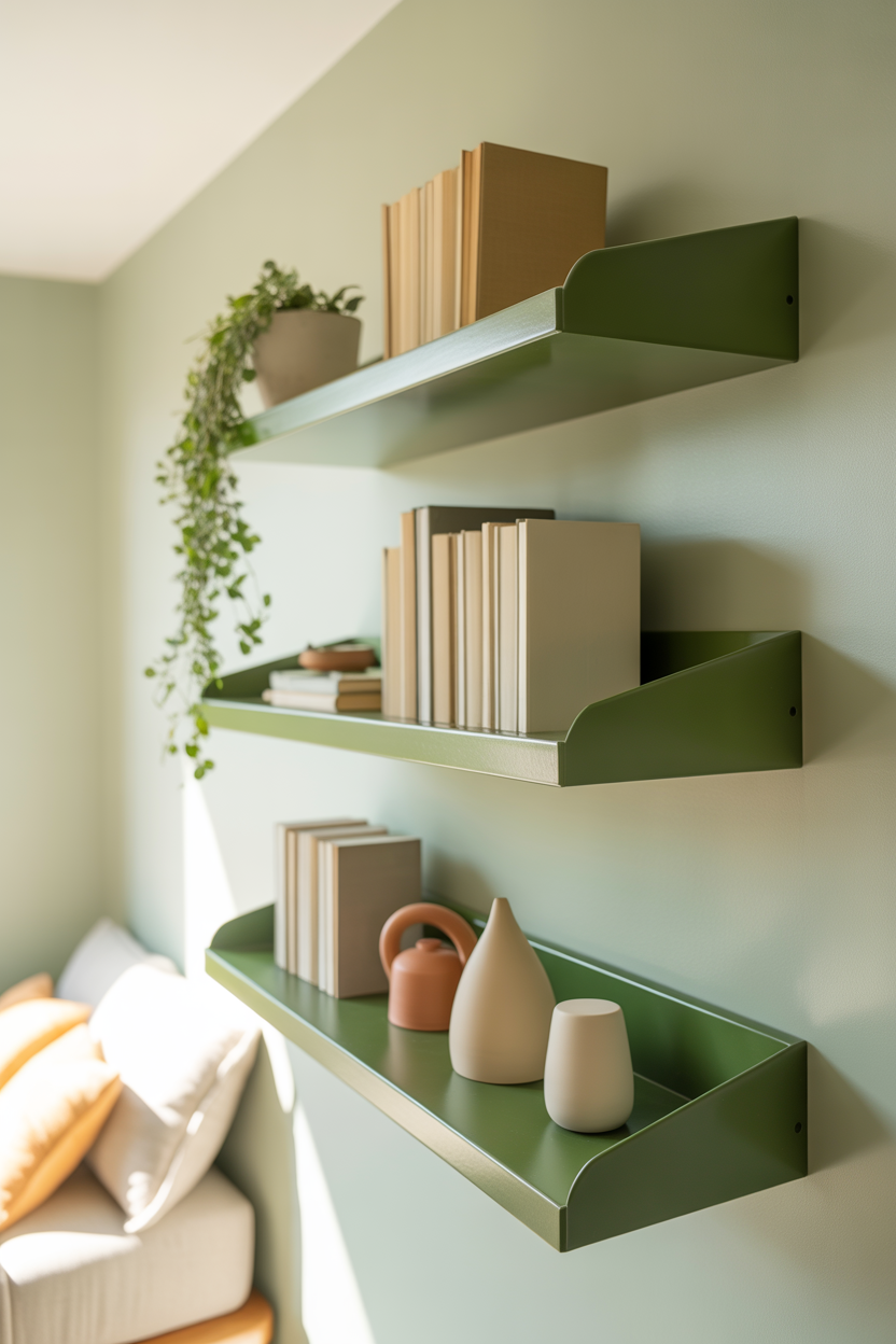 Install Sage Green Floating Shelves