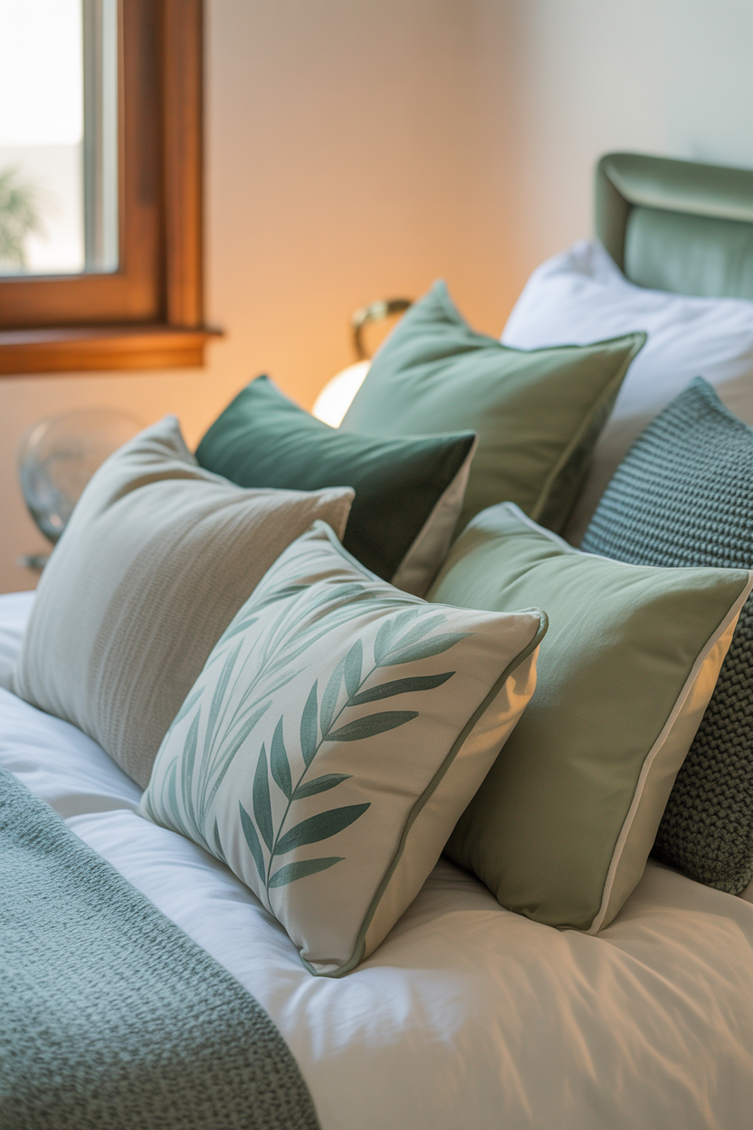 Soft furnishings in sage green bring color and comfort to your bedroom without permanent commitment. Layer different shades of sage green through your duvet covers, pillowcases, and throw blankets to create depth and visual interest. These textiles introduce the calming hue while remaining easily changeable as your style evolves.