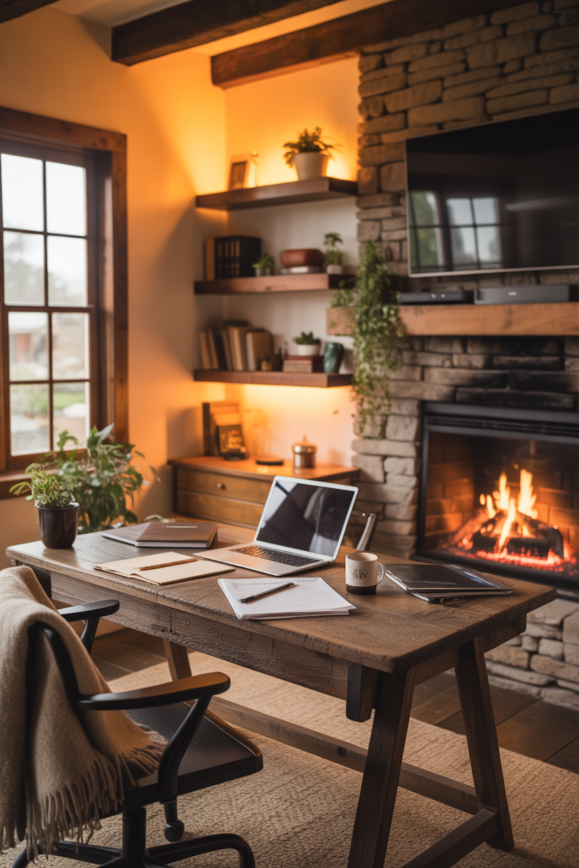Cozy Fireplace Workspace Ideas