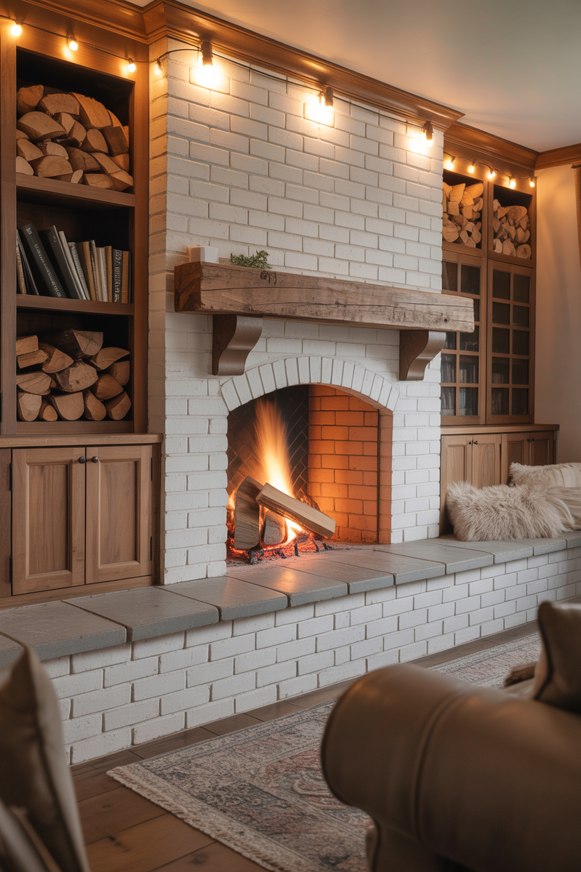 Smart functionality transforms a beautiful fireplace into a practical household feature. Design your Cozy Farmhouse Fireplace with built-in wood storage niches on either side for easy access to firewood while adding architectural interest.