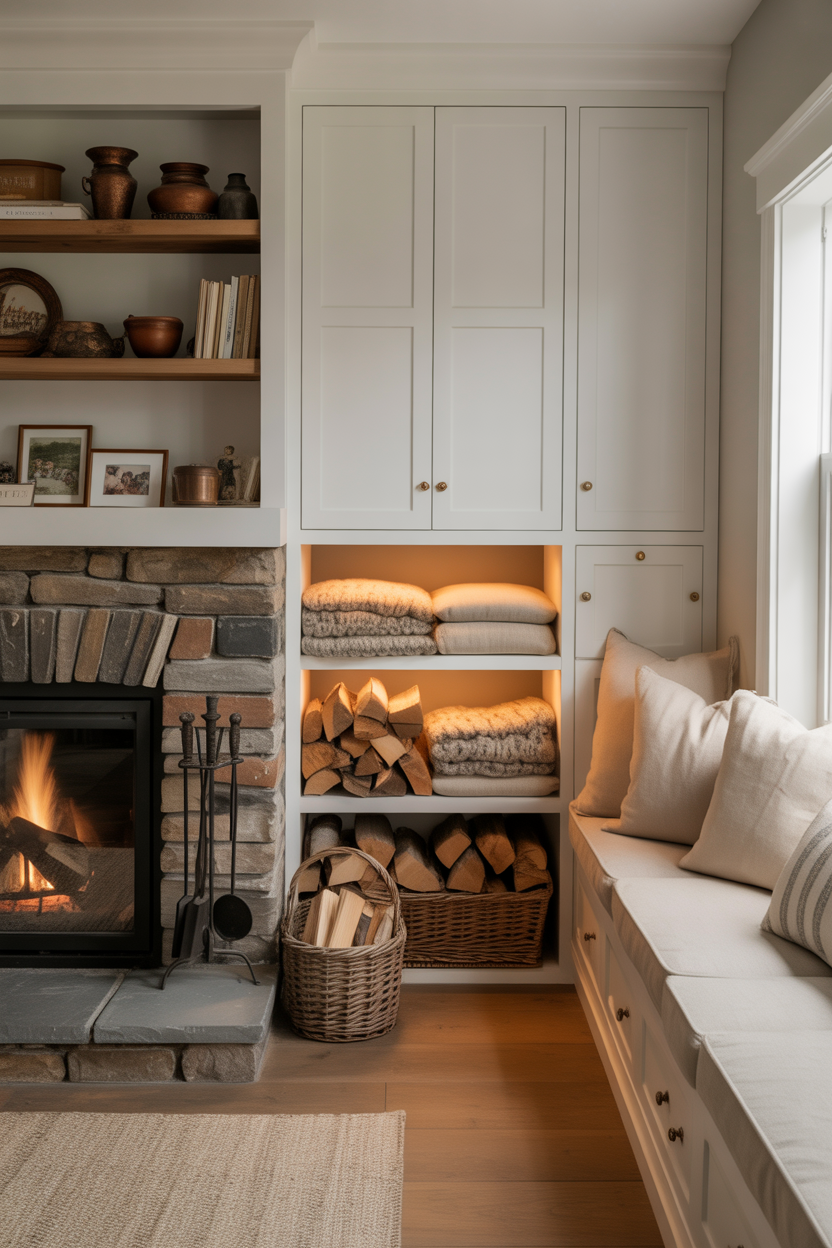 Fireplace with Storage Solutions