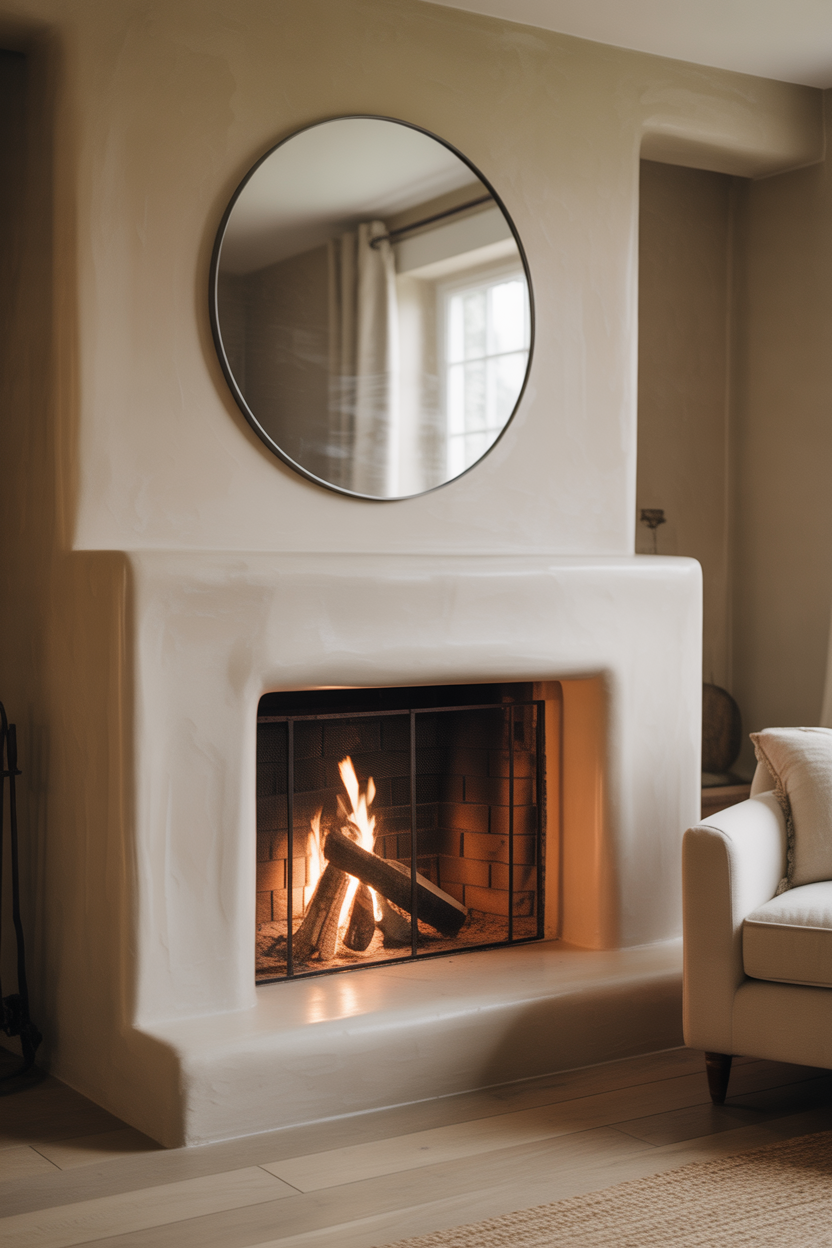 Keep mantel decorations minimal—perhaps just a single oversized mirror or a carefully chosen piece of artwork. This approach highlights the fireplace itself as the star attraction. Minimalist designs work particularly well in smaller spaces where visual clutter can feel overwhelming, allowing the cozy warmth to shine through unobstructed.