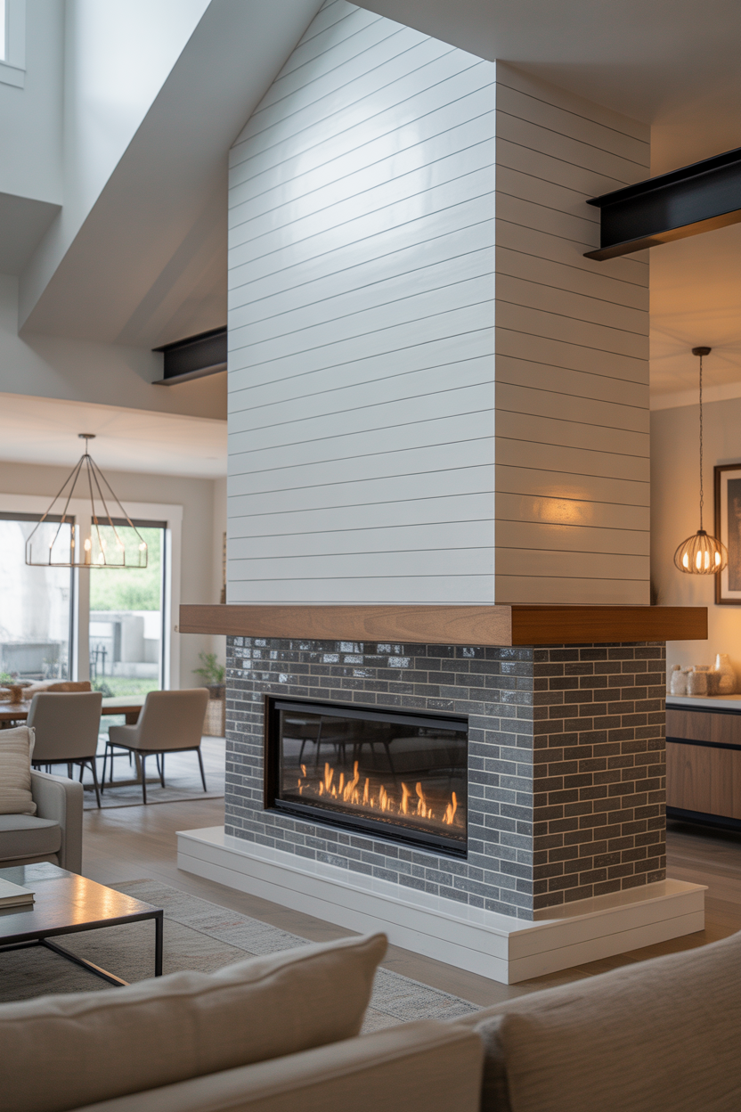 In open floor plans, your fireplace becomes a defining architectural element that anchors the entire space. Design a double-sided fireplace that serves both living and dining areas, creating warmth and visual connection between zones.