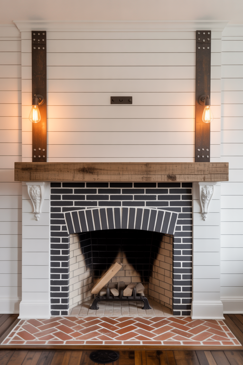 Accent choices transform a simple fireplace into a stunning focal point. Install contrasting materials like dark brick against white shiplap to create dramatic visual impact. Add decorative corbels beneath the mantel for architectural detail.