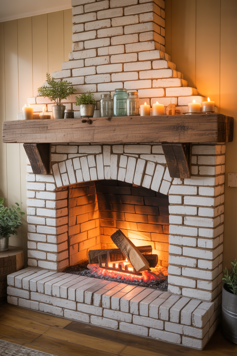 You don’t need unlimited funds to create a stunning farmhouse fireplace. Paint existing brick in warm white for instant transformation at minimal cost. Shop architectural salvage yards for authentic vintage mantels and accessories. DIY your shiplap surround using affordable pine boards. Thrift stores and estate sales offer perfect farmhouse-style décor items at fraction of retail prices.